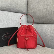 Prada热销女包 普拉达中古款百搭原厂尼龙布手提水桶包22.5CM 81166红色