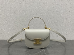 【P1430】Celine思琳23早春新款101063浅灰牛皮LISA同款手提迷你马鞍包15CM