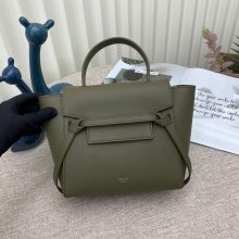 Celine女包批发 思琳99970橄榄绿手掌纹牛皮手提斜挎女包鲶鱼包小号20CM