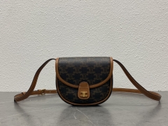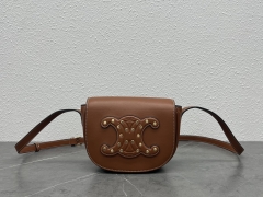 【P1280】Celine FOLCO CUIR 思琳2022春夏铆钉装饰牛皮马鞍包斜挎包 棕色
