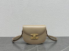 【P1620】Celine女包批发 赛琳110413奶茶色进口皮料凯旋门金扣马鞍包