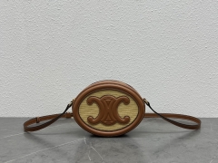 【P1130】Celine女包批发 思琳198604草编棕色牛皮大号小猪包月饼包20CM