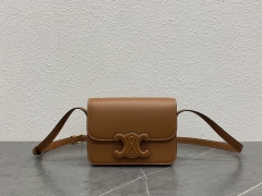 【P1500】Celine女包货源 思琳棕色浮雕凯旋门Box豆腐包18CM