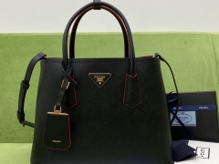 【P2100】普拉达女包价格 Prada原厂十字纹牛皮最新杀手包手提包33CM 黑色