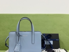 普拉达女包价格 Prada原厂十字纹牛皮中号水桶包手提斜挎包23CM 蓝色