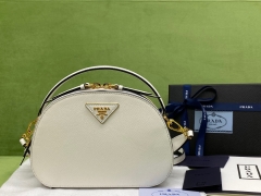 【1280】Prada Odette 普拉达20年新款76659白色十字纹牛皮手提女包半圆包