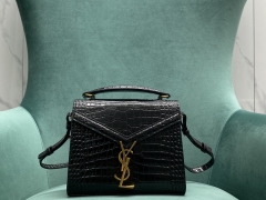 【P1580】YSL包包官网 圣罗兰623930黑色鳄鱼纹手提包CASSANDRA斜挎包