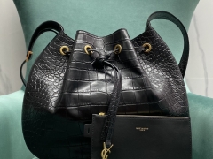 【P1770】YSL包包官网 圣罗兰新款697941黑色鳄鱼纹抽绳斜挎单肩女包
