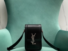 【P1250】YSL包包官网 圣罗兰753963黑色牙签纹box皮手机包斜挎包