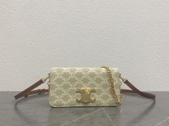 【P1200】YSL WOC链条包 圣罗兰743346白色格子链条包信封包23CM