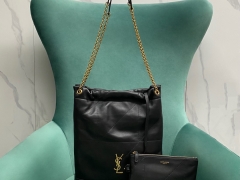 【P1500】YSL包包官网 圣罗兰713938黑色原厂皮hobo小号单肩包腋下包