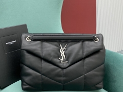 【P1580】YSL LOULOU PUFFER 圣罗兰黑色绗缝小羊皮中号太空包链条单肩包35CM