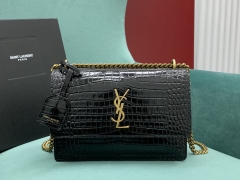 【P1500】YSL包包官网 圣罗兰升级版鳄鱼纹牛皮链条包Sunset日落包 黑色金扣