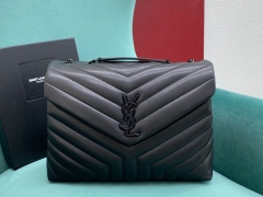 【P1470】YSL LOULOU系列 圣罗兰494699黑色V纹羊皮链条单肩斜挎包 黑扣