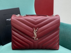 【P1500】YSL LOULOU系列大号 圣罗兰Y字纹真皮女包链条单肩包 459749酒红银扣