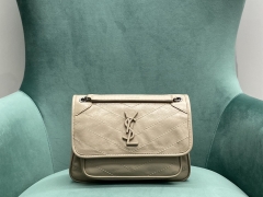 【P1320】一件代发 YSL圣罗兰633160裸色油蜡皮niki小号链条单肩包斜挎包22CM