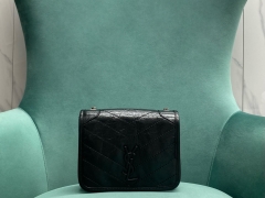 【P1170】YSL Niki Chain Wallet 圣罗兰黑色油蜡皮链条斜挎单肩包