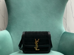 【P1500】YSL SOLFERINO 圣罗兰黑色绗缝绒面斜挎豆腐包739139A黑色