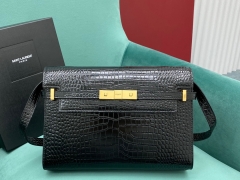 【P1550】圣罗兰新款女包 YSL黑色鳄鱼纹翻盖曼哈顿法棍包单肩包
