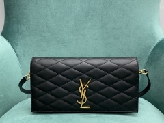 【P1020】圣罗兰新款女包 YSL菱格纹小羊皮翻盖斜挎包手包 676628黑色