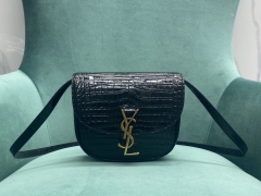 【P1200】YSL Kaia 圣罗兰619740鳄鱼纹单肩斜挎马鞍包18CM 黑色