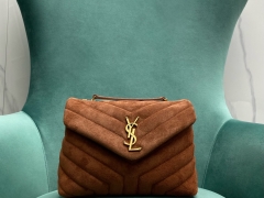 【1470】圣罗兰新款女包 YSL磨砂皮LOULOU系列绗缝链条包 砖红色
