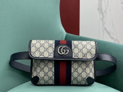 【P800】古奇包包价格 Gucci深蓝色牛皮配经典GG面料新款斜挎胸包腰包