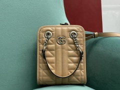 【P1170】Gucci包包官网 古驰696123杏色羊皮Marmont竖款斜挎手提包
