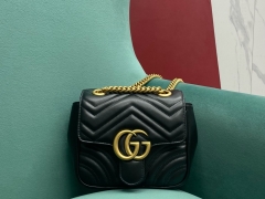 【P1280】Gucci Marmont全新升级 古奇新款739682黑色方胖子链条斜挎包18CM