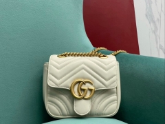 【P1170】古奇包包价格 Gucci Marmont新款金属链条全皮腋下包 白色