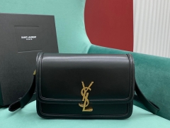 【P1500】YSL包包价格 圣罗兰经典标志性金色字母扣牛皮Box包斜挎女包 黑色