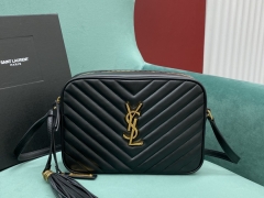 【P1050】一件代发 YSL圣罗兰黑色V纹520534相机包斜挎女包23CM 金扣