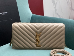 【P1020】YSL包包批发 圣罗兰632014杏色V纹双肩带信封包斜挎女包