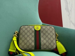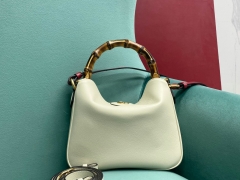 【P1430】古驰女包批发 Gucci新款荧光绑带手提包Diana竹节包27CM 棕色