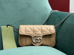 【P870】Gucci包包官网 古奇476433原厂皮绗缝新格迷你marmont单肩斜挎包