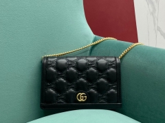 【P900】GG Matelassé链条包 古奇723787黑色绗缝皮革单肩斜挎包20CM