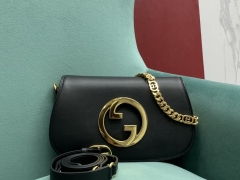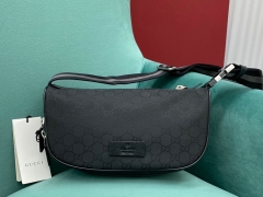 【P1580】古驰包包价格 Gucci新款全皮双G标识双肩带单肩斜挎包 黑色