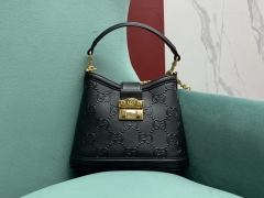 【P1470】古驰包包价格 Gucci黑色GG花纹手提单肩斜挎水桶包25CM