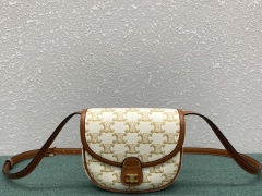 【P830】Celine包包货源 思琳进口印花料新款单肩斜挎马鞍包15CM 米白