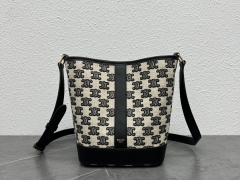 【P1050】思琳女包批发 Celine TRIOMPHE FOLCO织物刺绣水桶包 黑色