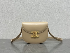 【P1620】思琳包包价格 Celine新款凯旋门扣斜挎马鞍包 110413裸杏色
