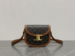【P1430】思琳包包价格 Celine老花料拼棕色皮凯旋门扣半圆马鞍包18CM