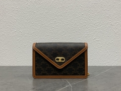 【P1580】思琳包包价格 Celine 2021秋冬新款TABOU翻盖包斜挎肩背包 棕色
