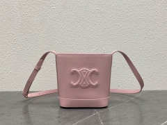 【P1130】一件代发 Celine思琳新款浮雕Logo水桶包迷你版单肩斜挎包 100433粉色