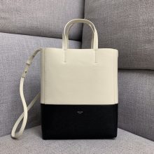 思琳包包价格 Celine2020年新款黑白拼色手掌纹牛皮手提斜挎水桶包23CM