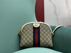 【P980】Gucci Ophidia系列 古奇499621白皮配老花织带贝壳包斜挎包
