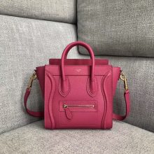 Celine女包价格 思琳189243荔枝纹2020新色玫瑰红Luggage笑脸包20CM