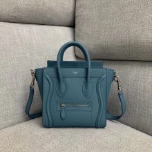 一件代发 Celine思琳经典款荔枝纹Luggage笑脸包手提女包20CM 189243石蓝色