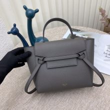 思琳包包批发 Celine进口手掌纹牛皮手提斜挎迷你鲶鱼包16CM 大象灰