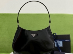 【P1050】普拉达包包价格 Prada黑色漆皮新款单肩包腋下包27CM